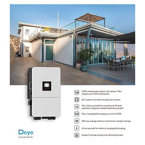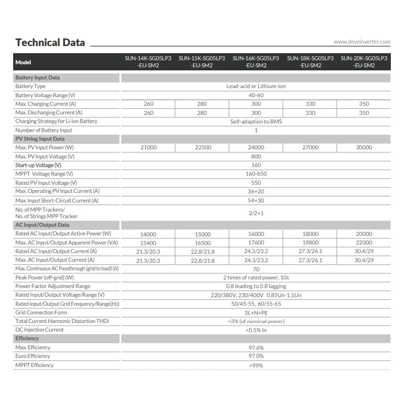 Deye SUN-15K-SG05LP3-EU – современный трехфазный гибридный инвертор имеет мощность 12000Вт, напряжение аккумуляторных батарей 48В, что сможет обеспечить надежную электропитание. Поддержка трехфазного тока дает возможность широкого применения устройства.