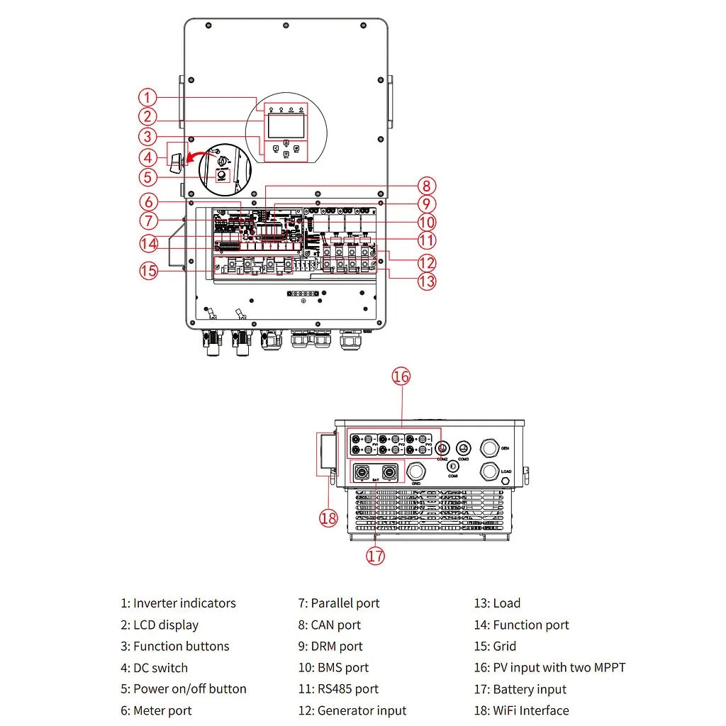 Deye Sun-30K-SG02HP3-EU-AM2 представляет собой трехфазный гибридный инвертор высокого напряжения для солнечных электростанций. Этот инвертор используется для преобразования DC (DC), который производится солнечными батареями в AC (AC), которые можно использовать для электроэнергии в вашем доме, можно использовать для электроэнергии.
