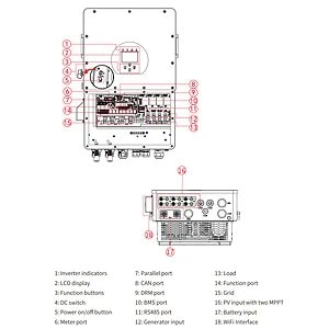 Инвертор оснащен тремя MPPT трекерами, по 2 стринга на каждый трекер. Поэтому к инвертору можно подключать два отдельных массива солнечных панелей (восточный и западный скат крыши дома или монтаж части панелей на крыше, а части на земле).