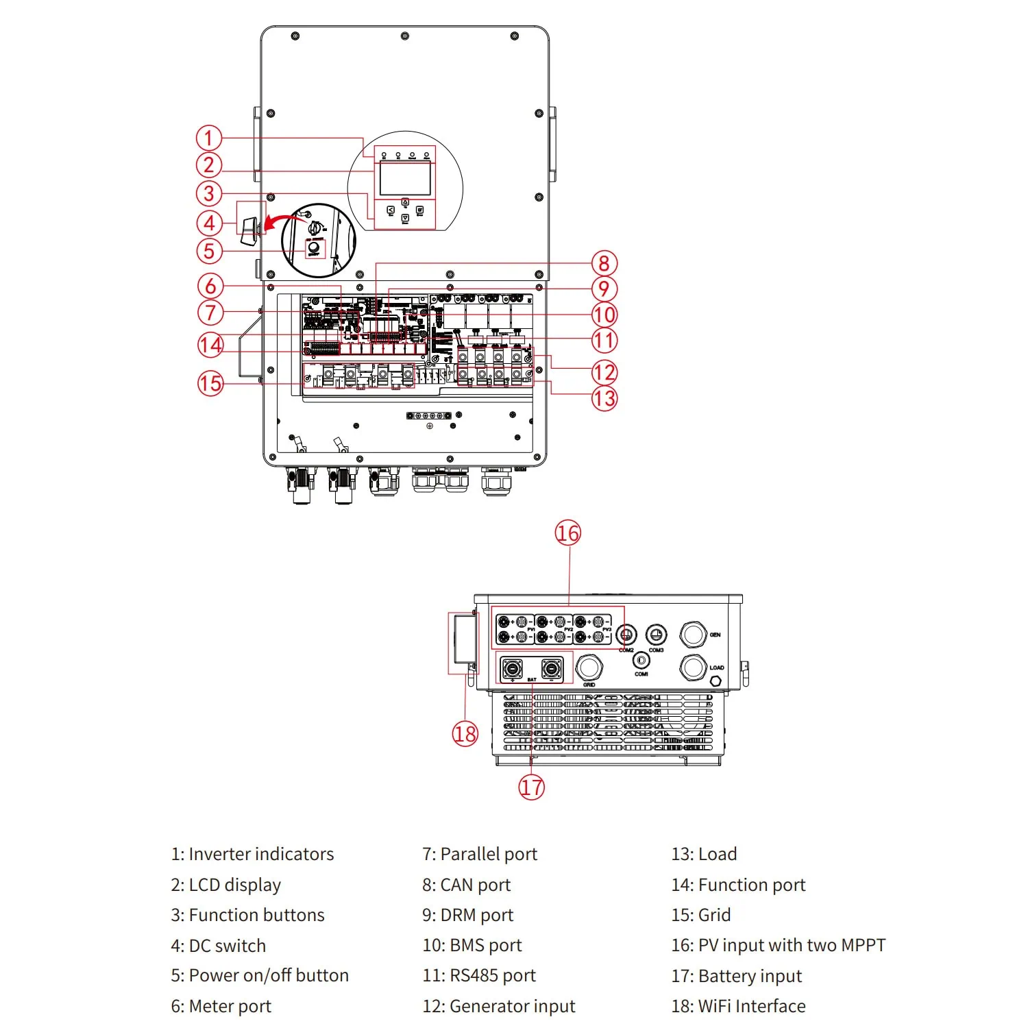 Deye Sun-30K-SG02HP3-EU-AM2 представляет собой трехфазный гибридный инвертор высокого напряжения для солнечных электростанций. Этот инвертор используется для преобразования DC (DC), который производится солнечными батареями в AC (AC), которые можно использовать для электроэнергии в вашем доме, можно использовать для электроэнергии.