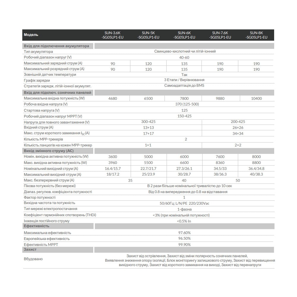 Deye SUN-8K-SG05LP1-EU WiFi — гибридный сетевой инвертор с широкими возможностями по функционалу. Он поможет вам воплотить в реальность вашу идею создания энергонезависимого дома. Он способен работать в разных режимах: как автономный инвертор; как сетевой с аккумуляторными батареями, так и без них; продавать излишки электроэнергии в сеть по «зелёному тарифу» или работать как станция для компенсации собственного потребления объекта; работать как источник бесперебойного питания от сети; управлять генератором. Все эти режимы можно выбирать.