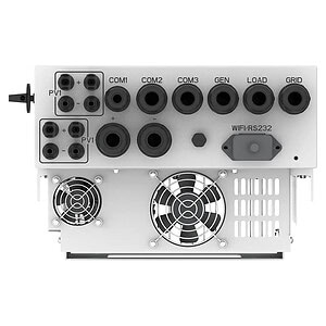 В данном инверторе есть одна отличительная особенность, в нём предусмотрен дополнительный многофункциональный силовой порт, который в меню настроек инвертора может быть назначен как входом, так и выходом. Он имеет три варианта использования. Режим генератора — в таком режиме к порту подключается генератор, он может управляться инвертором, запускаться, когда это нужно инвертору в автоматическом режиме. Для этого нужно иметь генератор с автоматикой. Инвертор подаёт сигнал на разрешение работы генератора, и генератор запускается. В настройках инвертора есть возможность установки мощности генератора, которую допустимо брать с него, также максимальное время работы генератора, время отдыха генератора. Отдельно для данного входа можно указать ток заряда аккумулятора.