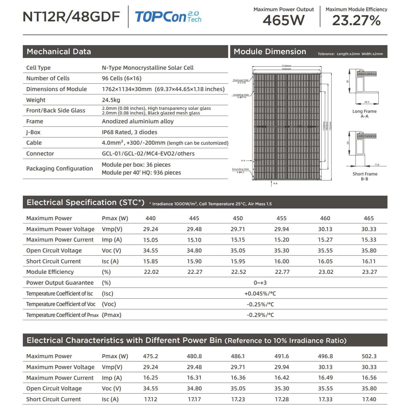 Монокристаллическая солнечная панель GCL-450 NT12R Bifacial с мощностью 450 Вт. Высокая эффективность – 22,52%.