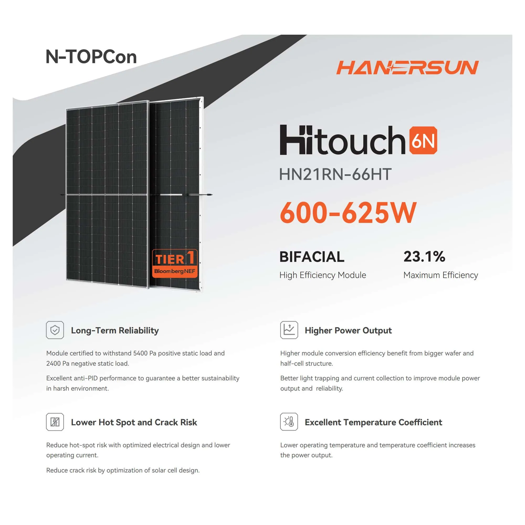 Идеальные панели для оборудования крыши домохозяйства. Специальные технологии резки и пайки, применяемые при производстве, уменьшают риск перегрева панелей. Высококачественный капсульный материал и высокий уровень контроля производства. Прозрачное самоочищающееся стекло обеспечивает дополнительную производительность и легкое обслуживание. Оптимизированная производительность системы благодаря сортировке тока на уровне модуля. Панели проходят испытание на выдувание песка, испытание на солевой туман и испытание на аммиак, позволяющие выдерживать суровые условия эксплуатации.