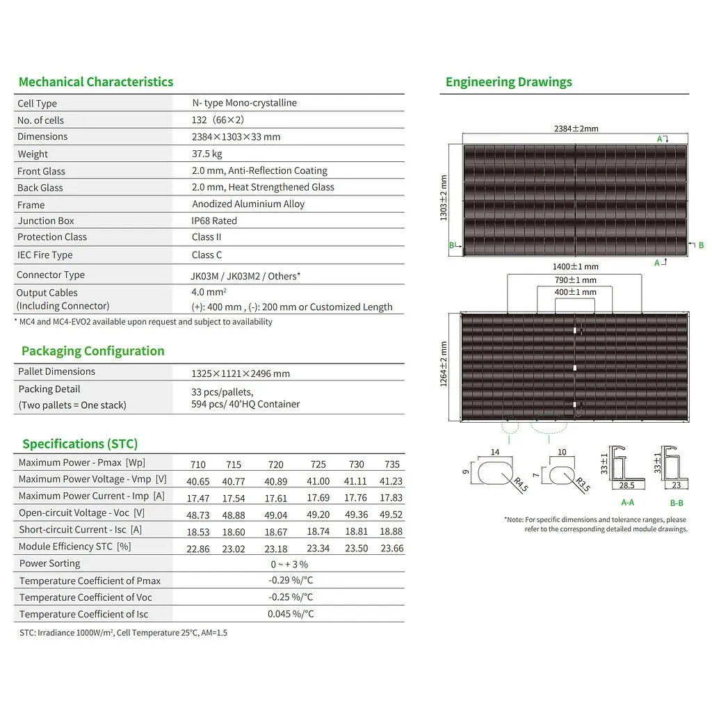 - Технология Multi Busbar Technology дает лучшее захват света и сбор тока для улучшения выходной мощности и надежности модуля;