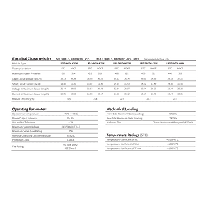 Механическая прочность: Longi LR5-54HTH Панели могут выдерживать снежные нагрузки до 5400 PA и ветровые нагрузки до 2400 PA. Это делает их пригодными для использования при сильных ветрах и снегопаде, что является важным фактором для регионов с экстремальными погодными условиями.