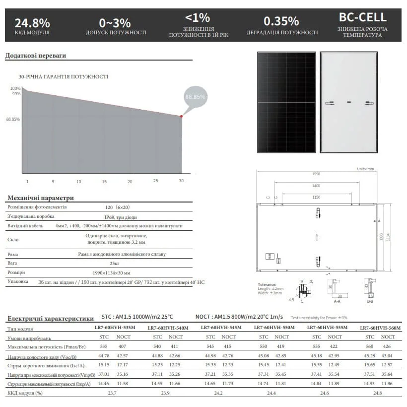 → Загрузить техническую документацию (Datasheet Longi LR7-60НVH 540M)