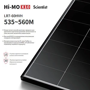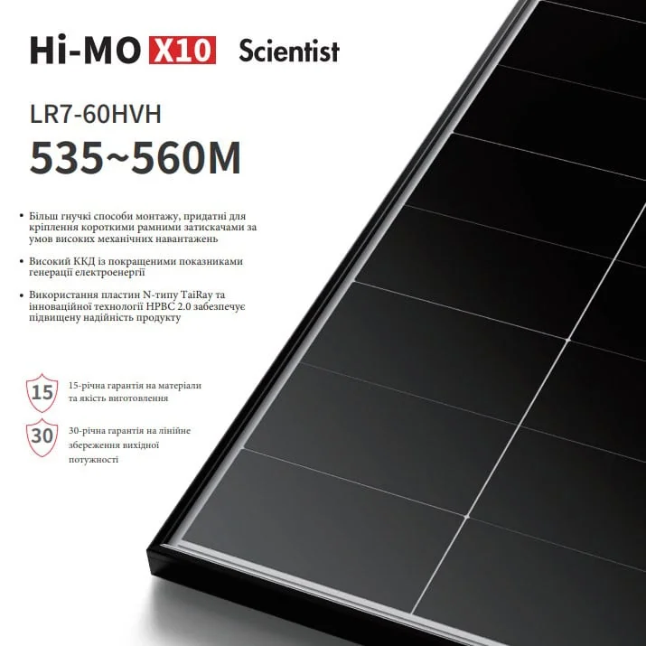 Монокристаллическая солнечная панель Longi LR7-60НVH 540M с мощностью 540 Вт. Высокая эффективность – 23,9%.