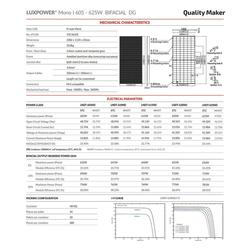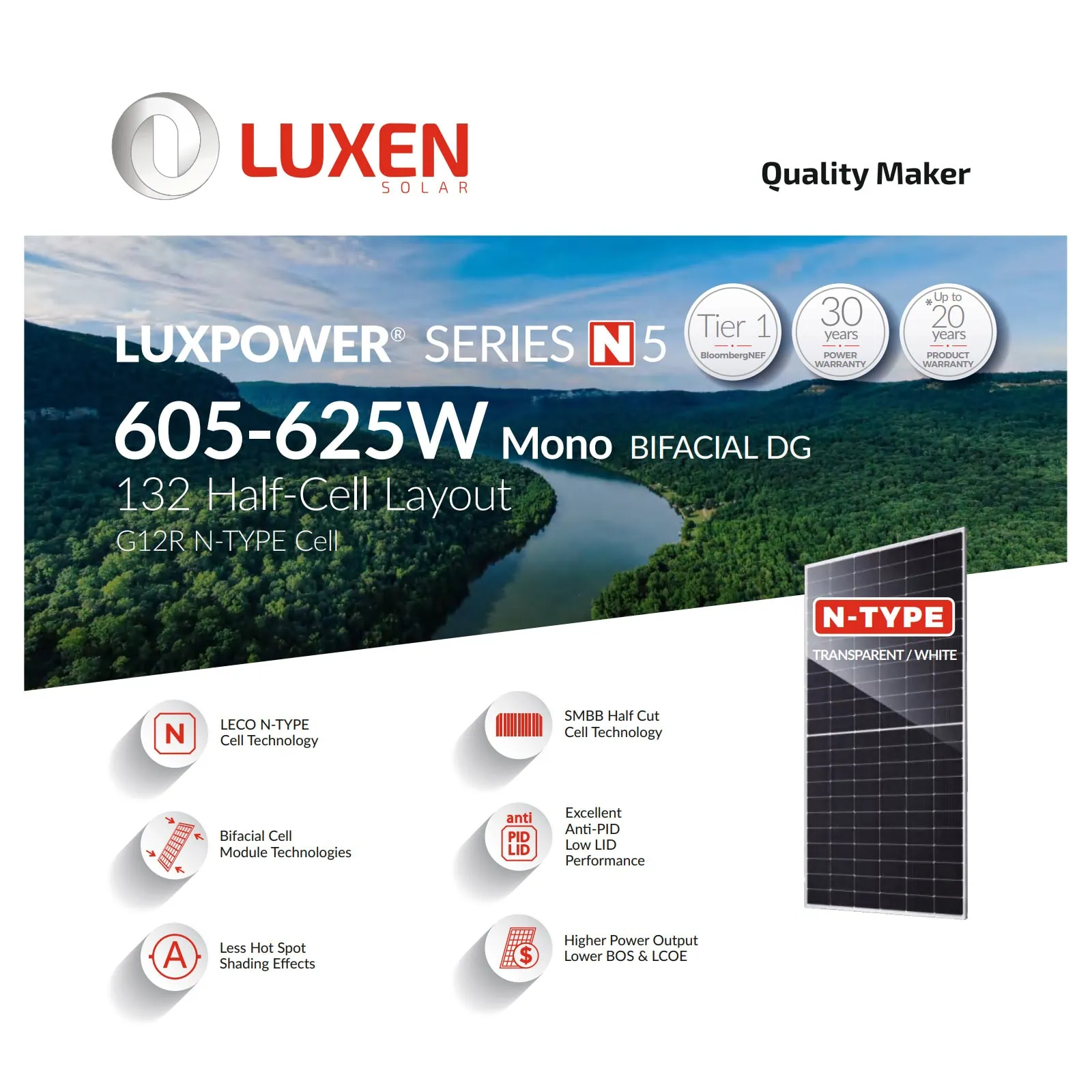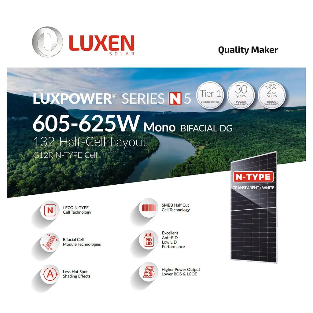 Монокристаллический двухсторонний N-type фотомодуль нового поколения Luxen LNDT-625ND из Tier-1