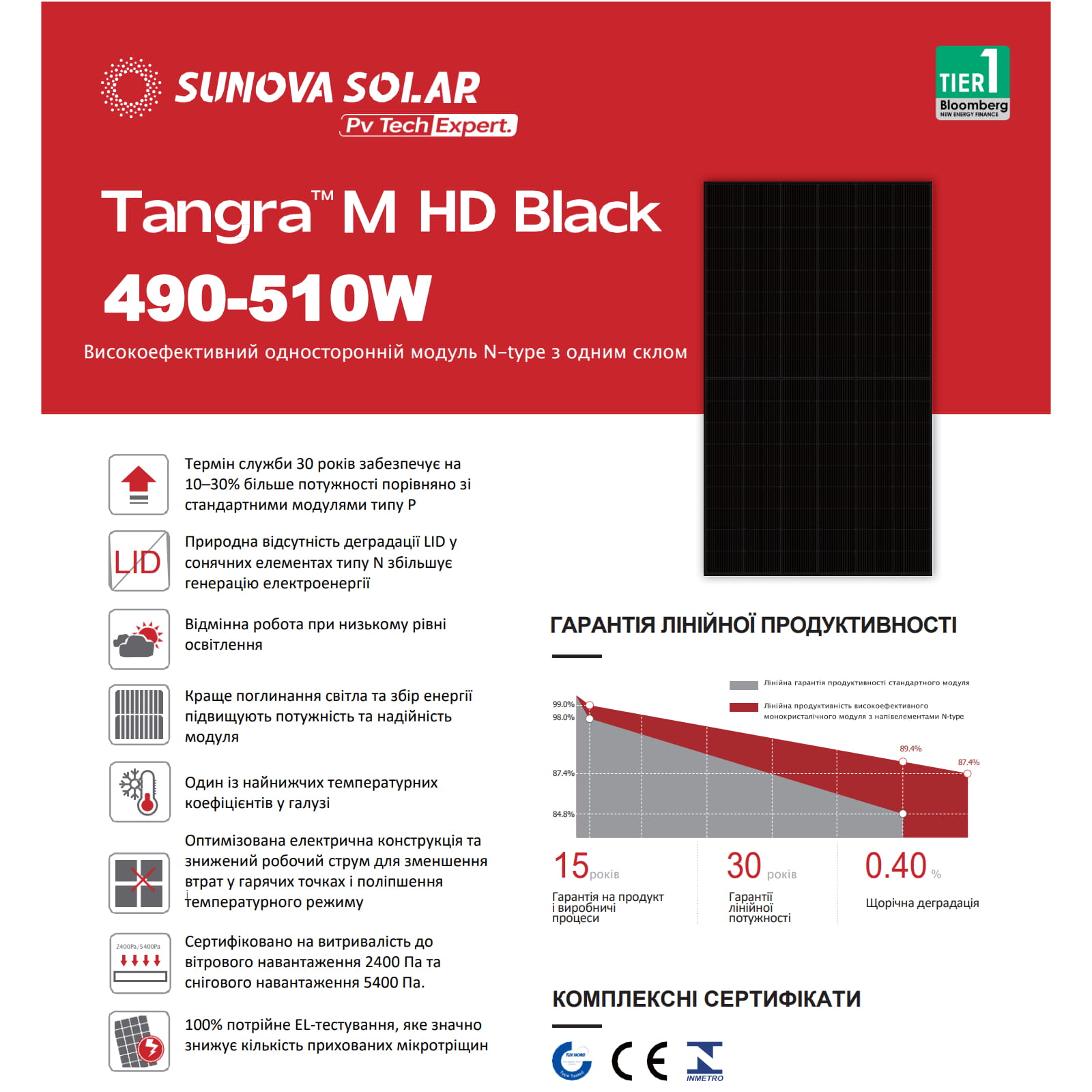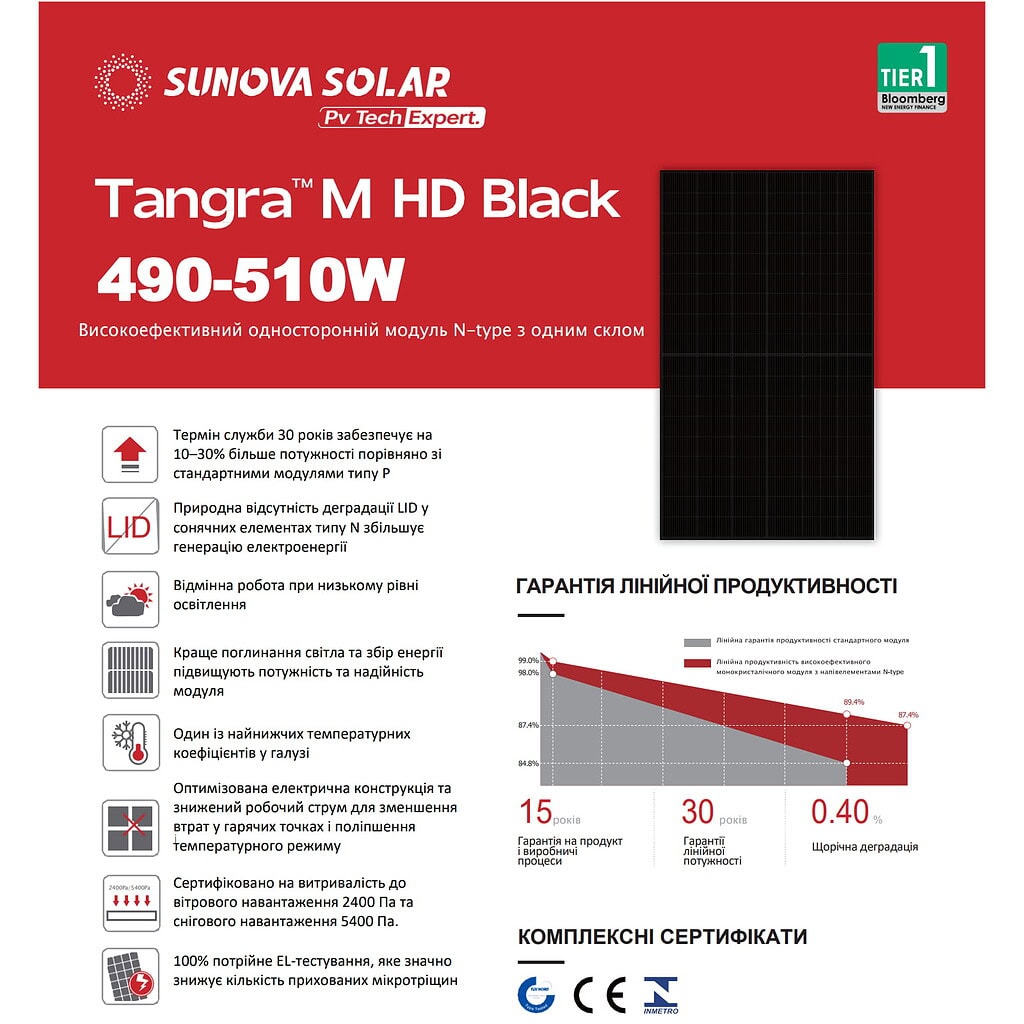 Компания Sunova Solar — производитель уровня Tier 1 (по классификации BloombergNEF), выпускающий современные высокоэффективные солнечные панели с технологией N-type TOPCon и повышенным КПД. Благодаря надежной сборке, длительной гарантии и стабильной производительности они являются отличным выбором для частных и коммерческих солнечных электростанций.