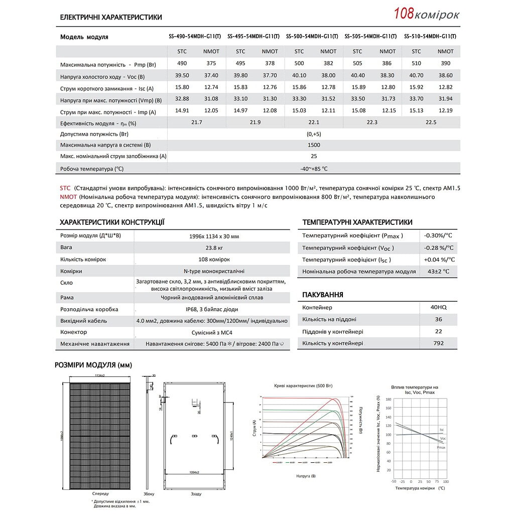 Солнечная батарея 510 Вт N-type, SS-510-54MDH-G11(T), Sunova Solar — это высокоэффективный монокристаллический фотомодуль нового поколения с технологией N-type half-cell с односторонней генерацией и стильным дизайном Full Black.