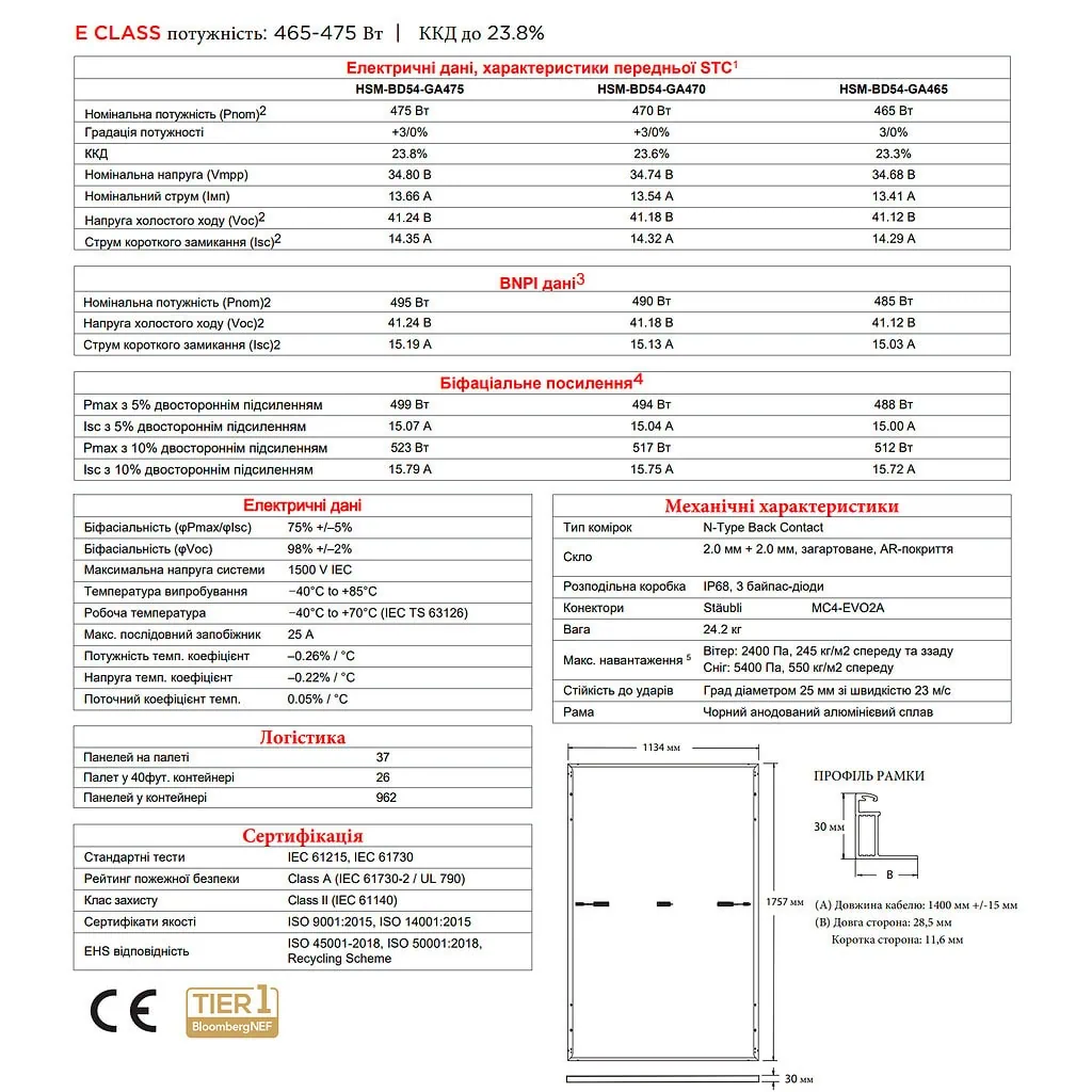 → Загрузить техническую документацию (Datasheet TCL Solar HSM-BD54-GA)