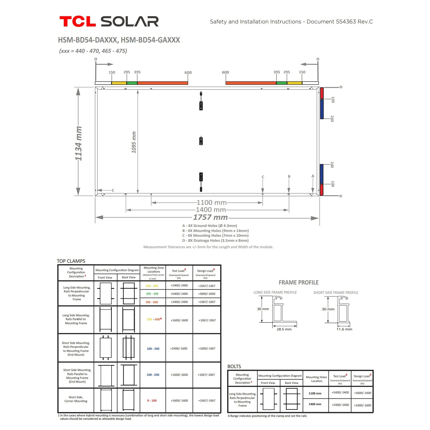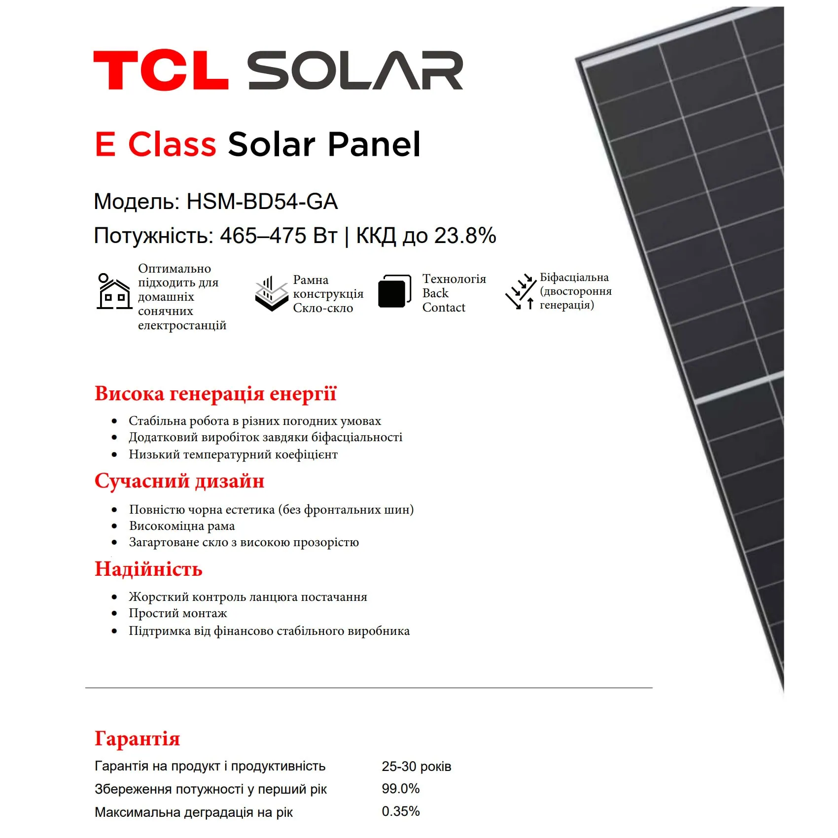 → Загрузить техническую документацию (Datasheet TCL Solar HSM-BD54-GA)