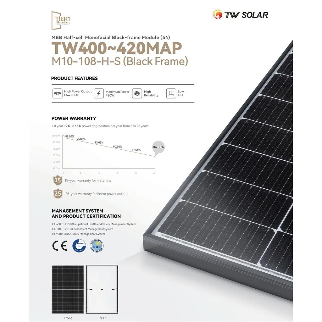 Благодаря высоким стандартам производства, солнечные панели Tongwei обладают повышенной эффективностью, длительным сроком службы и устойчивостью к экстремальным условиям. Их выбирают для промышленных, коммерческих и частных солнечных электростанций по всему миру.