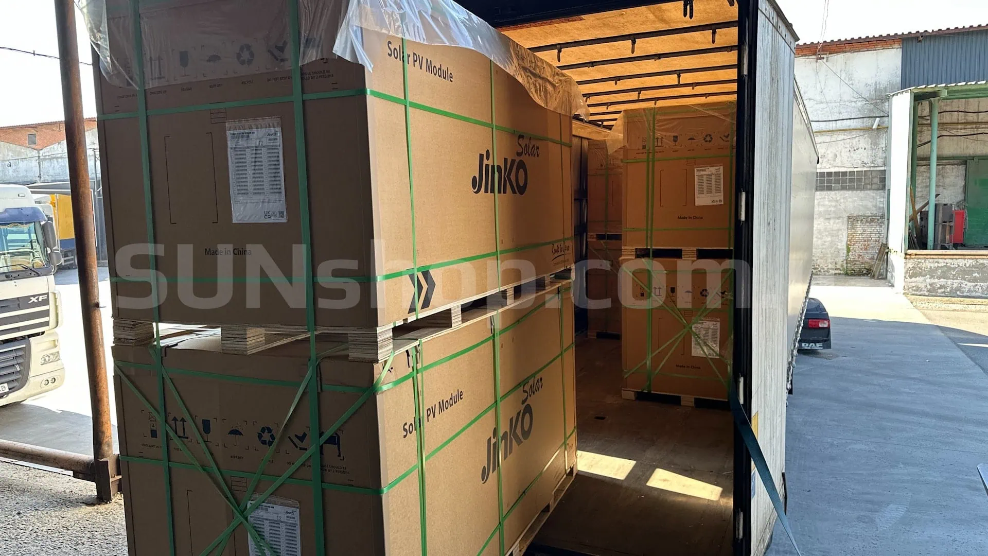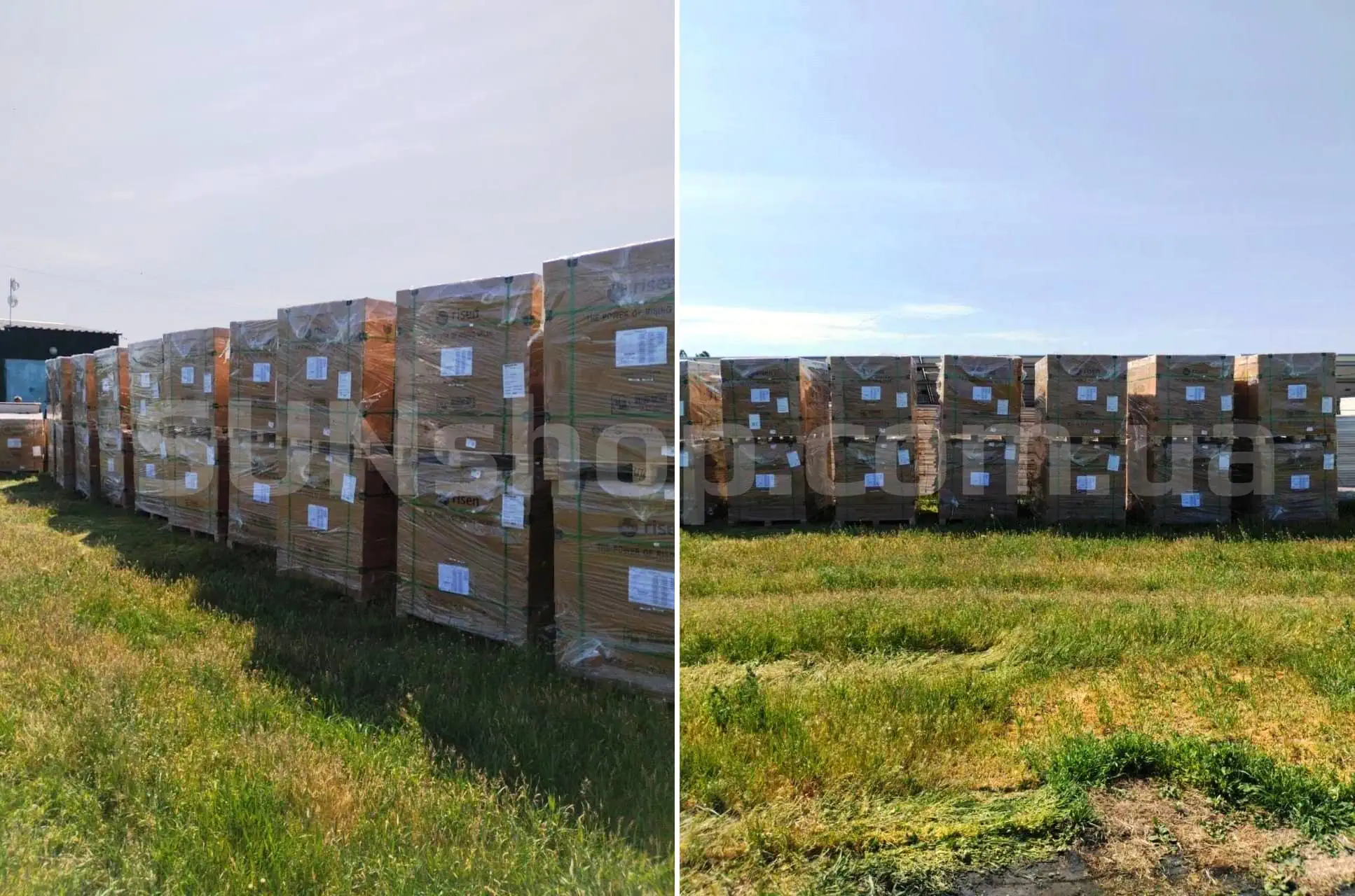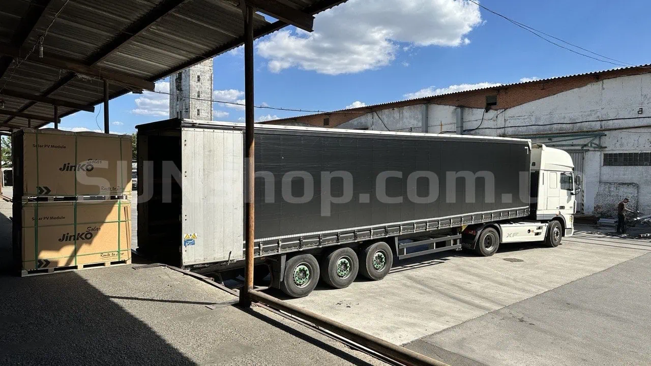 Один контейнер ≈ 620–936 шт панелей (точное количество зависит от габаритов и мощности модуля). Панели поставляются в паллетах (заводской упаковка на поддоне) по 36шт. Из контейнера, по прибытию в порт Роттердам (Нидерланды), паллеты с панелями перегружаются из контейнера в фуру и уже грузовик осуществляет доставку солнечных батарей в Украину. В прицепе длинномера (фуры) паллеты устанавливаются в два ряда по высоте так, чтобы вместить весь объем товара и доставить весь контейнер. Разгрузка по прибытию на объект клиента - должна осуществляться заранее подготовленным вилочным-погрузчиком с рампы или с земли при боковом открытии тента фуры.