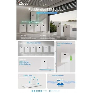 Deye RW-16 – це інноваційна система зберігання енергії для житлових приміщень, розроблена для підвищення енергоефективності та надійності. Завдяки передовим функціям безпеки, гнучкості в експлуатації та високій продуктивності, цей пристрій стане ідеальним вибором для сучасних домогосподарств, що прагнуть оптимізувати використання енергії.