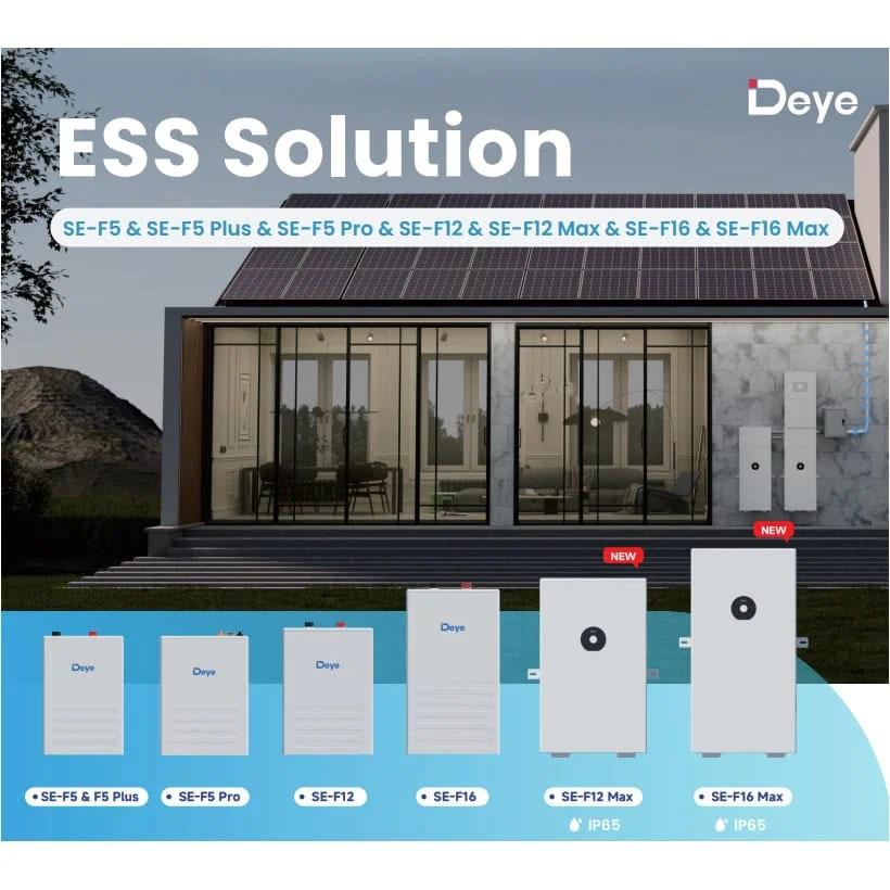 Акумуляторна батарея SE-F16 від Deye є високоефективним рішенням для гібридних сонячних систем і автономних енергетичних проектів. Вона побудована на базі літій-залізо-фосфатної технології LiFePO₄, що забезпечує підвищену безпеку, стабільність та тривалий термін експлуатації навіть у складних умовах. Номінальна ємність становить 314 Ач при напрузі 51,2 В, а загальна енергоємність досягає 16 кВт год, що дозволяє створювати системи з високою автономністю і надійним енергопостачанням.