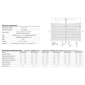 - Висока ефективність (≈ 22.3 %) по відношенню до фотомодулів подібної потужності.