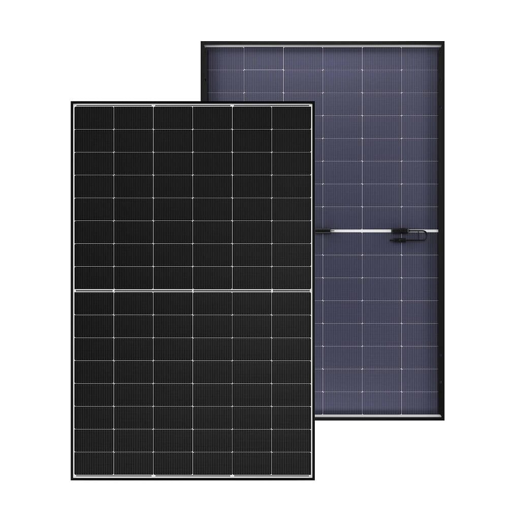 - Двостороння генерація (Bifacial): модель здатна генерувати енергію не тільки з прямого сонячного світла, але і відбитого, що дає додатковий приріст вироблення, особливо при правильному монтажі.